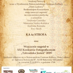 Wieczornica poetycka "KA ta STROFA" oraz rozdanie nagród w konkursie fotograficznym "Tatrzańska jesień" 2019